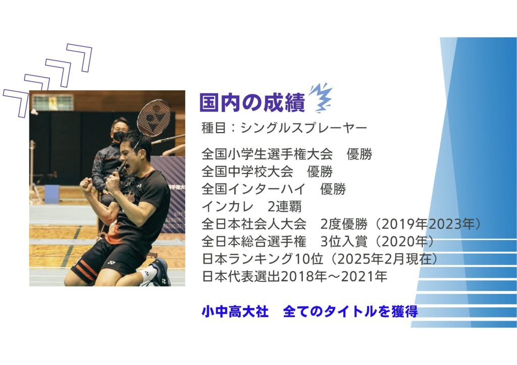 国内大会(全日本社会人、ランキングサーキット大会)で優勝する